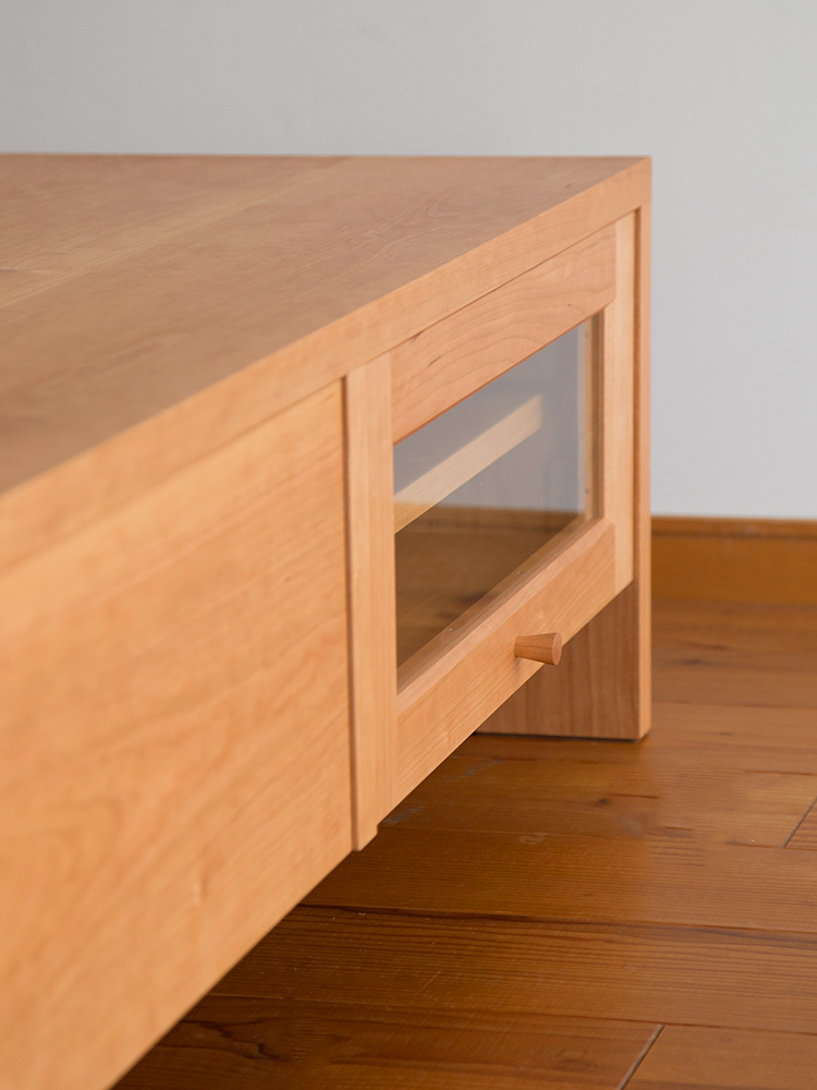 こちらが完成した32型用のTVボードです。椅子に腰掛けてではなく、ローテーブルと座布団を使った床座の生活とのことでしたので、高さは35cmと低めに抑えました。